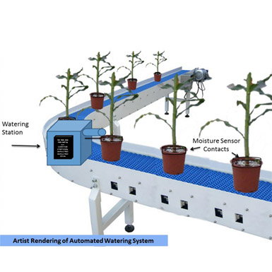 The Greenhouse Watering System is a custom watering system for automated greenhouse operations that require accurate watering. The system can be quickly integrated with any conveyor belt and configured for your exact needs.